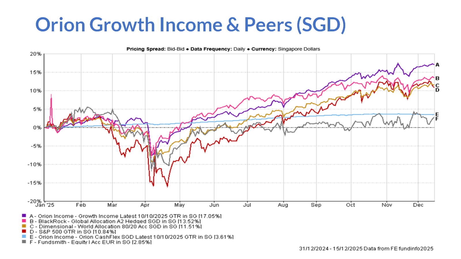 The Orion Income Portfolios demonstrate how thoughtful allocation can capture upside while reducing risk, balancing exposure across companies with strong fundamentals, value opportunities, and income‑focused assets. This breadth of positioning has allowed us to navigate uncertainty while continuing to benefit from opportunities to generate consistent income streams for our clients.